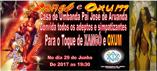 A Casa de Umbanda Pai José de Aruanda que fica localizada na cidade de Areia Branca/RN, realizou uma linda homenagem aos Nossos Orixás Pai Xangô e Mãe Oxum. Queremos agradecer a presença do Babárolixá Yram de Oxala guian, e a Yalorixá Vanna da Oxum, que vieram prestigiar essa linda homenagem aos nossos ORIXÁS, e